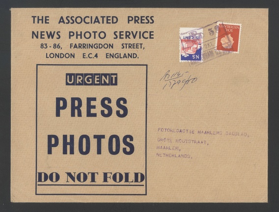 Cover of a letter sent to Baldermann Glass Works in Döbern (Germany) by the store FOTOS in Moscow (Russia), offering optical and photographic equipment and materials.