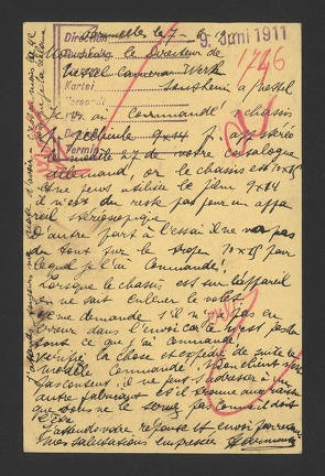 Business stationery (postcard with engraved stamp, front of) used by the company PERMENTIER in Brussels (Bruxelles, Belgium), warehouse with photographic equipment. The postcard was addressed to Nettel Camera Werk in Sontheim am Neckar (Germany), manufacturer of cameras e. g. Deckrullo-Nettel, Rolltak, Stereax, Duplak.