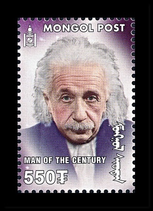Stamp (I), of a 9-stamp set issued in form of a sheet, honoring ALBERT EINSTEIN (1879 – 1955) , German-born American theoretical physicist as a “Man of the century”. The design of the stamp (side-turned image) was based on a photographic portrait taken in 1948 by Canadian portrait photographer YOUSUF KARSH (1908 – 2002).