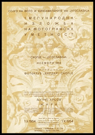 Business stationery (folded letter, front of) used by the FOTO-KLUB “FARDAR” in Skopje (Yugoslavia). The letter, addressed to Beaumont Camera Club in Beaumont (Texas, USA), contained invitation to participate in an photographic exhibition, rules, and application form. The exhibition had to be held between 11 November to 5 December 1954.