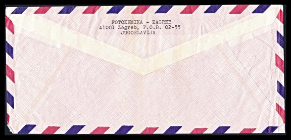 Business stationery (cover, front of) used by the company FOTOKEMIKA in Zagreb (Yugoslavia). The registered letter was addressed to the state enterprise VEB Filmfabrik Wolfen in Wolfen (Germany – DDR). Fotokemika was founded in 1947 to make B/W films, papers, photographic chemicals.
